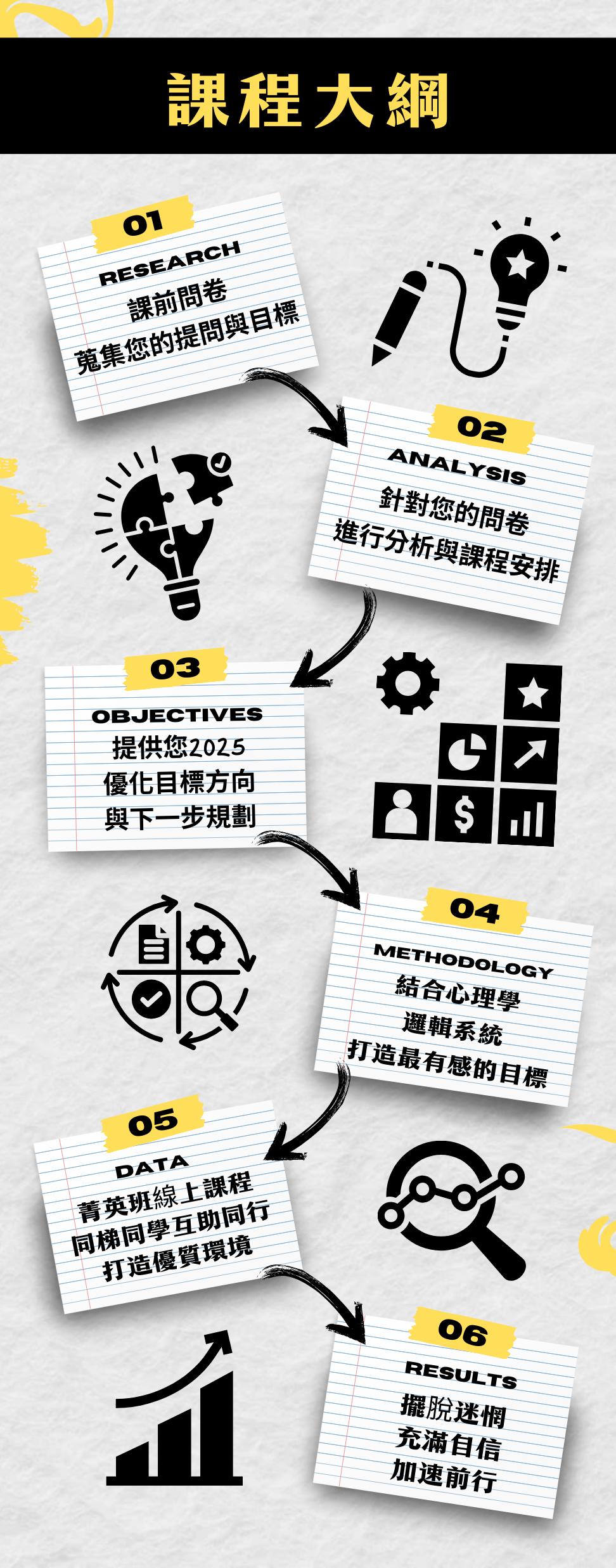 於課前兩週提供問卷表單,填寫完畢後客製化安排您的優化課程